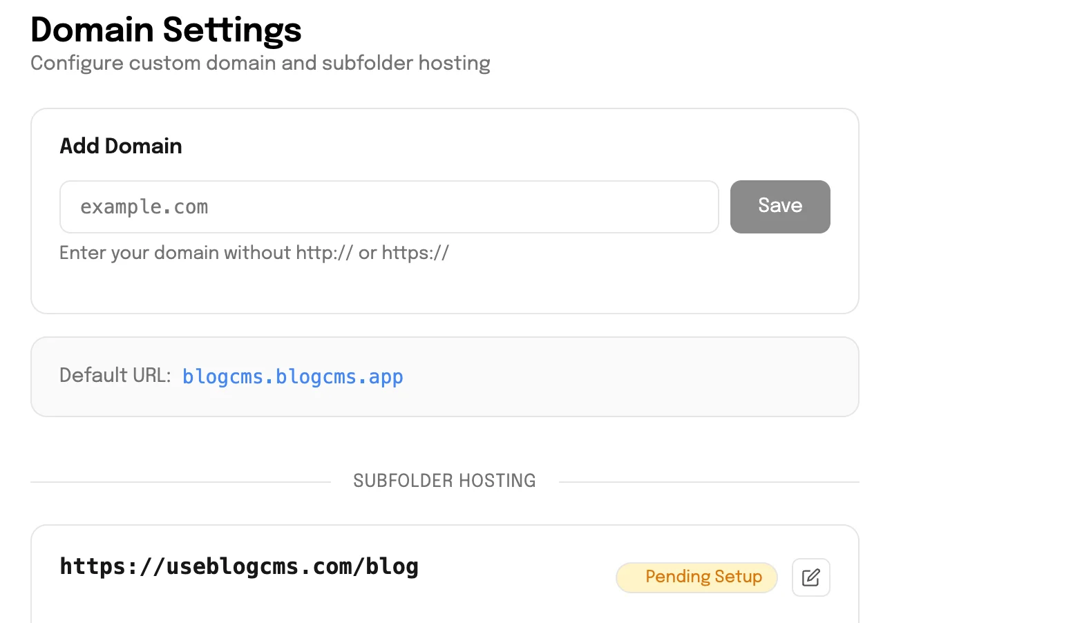 Option B: Subfolder Setup (Recommended) Configure your blog to appear at yourcompany.com/blog. This is the best option for SEO as it keeps all content under your main domain.